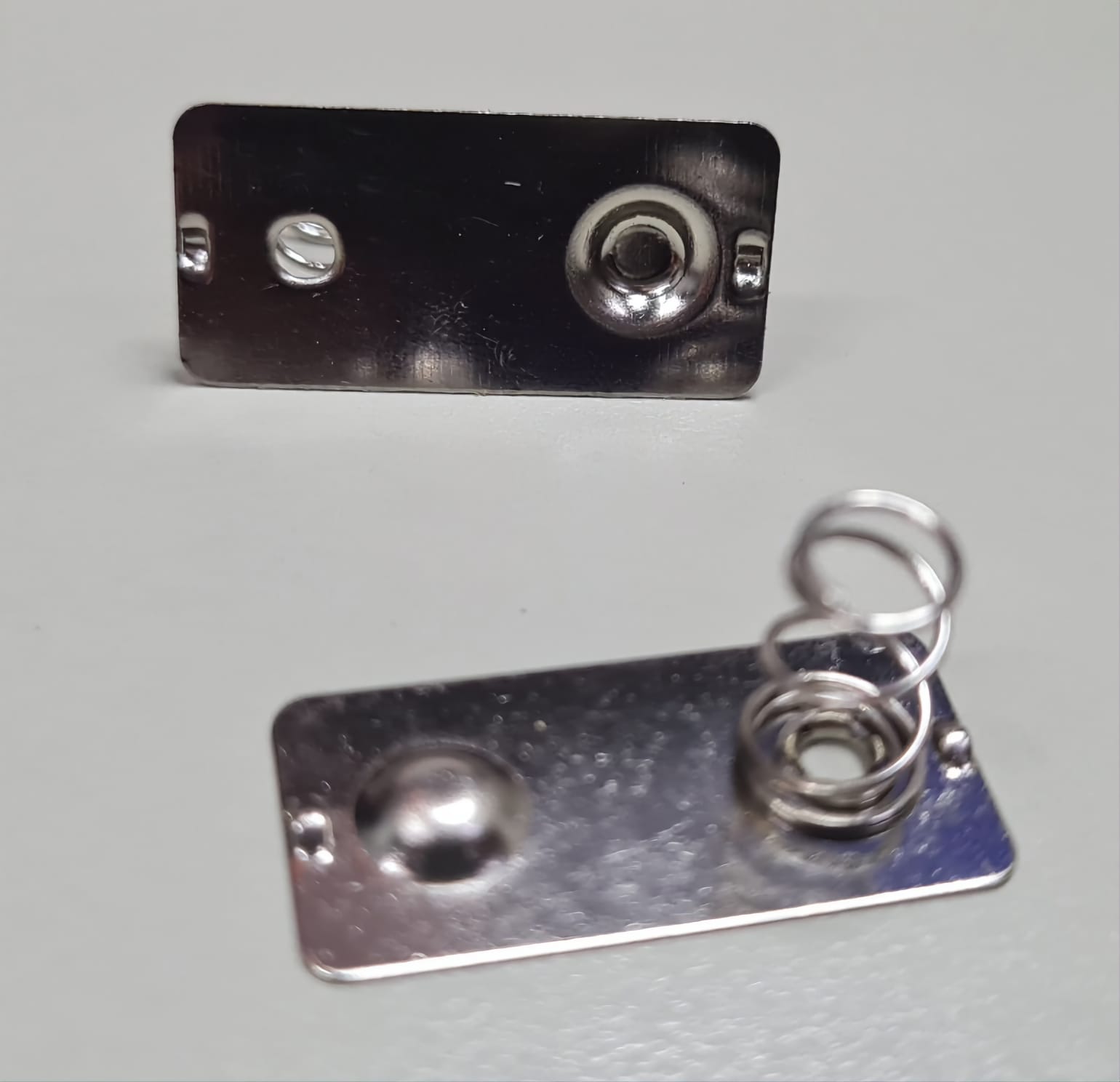 PLACA DE CONTACTO POSITIVA Y NEGATIVA DE RESORTE DE PLATA PARA PILAS AA Y 9V